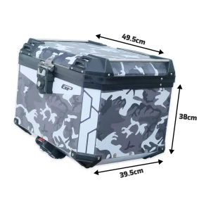Алуминиев куфар 57 литра за мотоциклет GP Kompozit е изработен от материал от алуминиево-магнезиева сплав с дебелина 1,5 mm, който е устойчив на корозия, водоустойчив и издръжлив. При отварянето и затварянето на капака сме добавили ограничителна част, за да го направим по-солиден и издръжлив за многократно отваряне и затваряне.