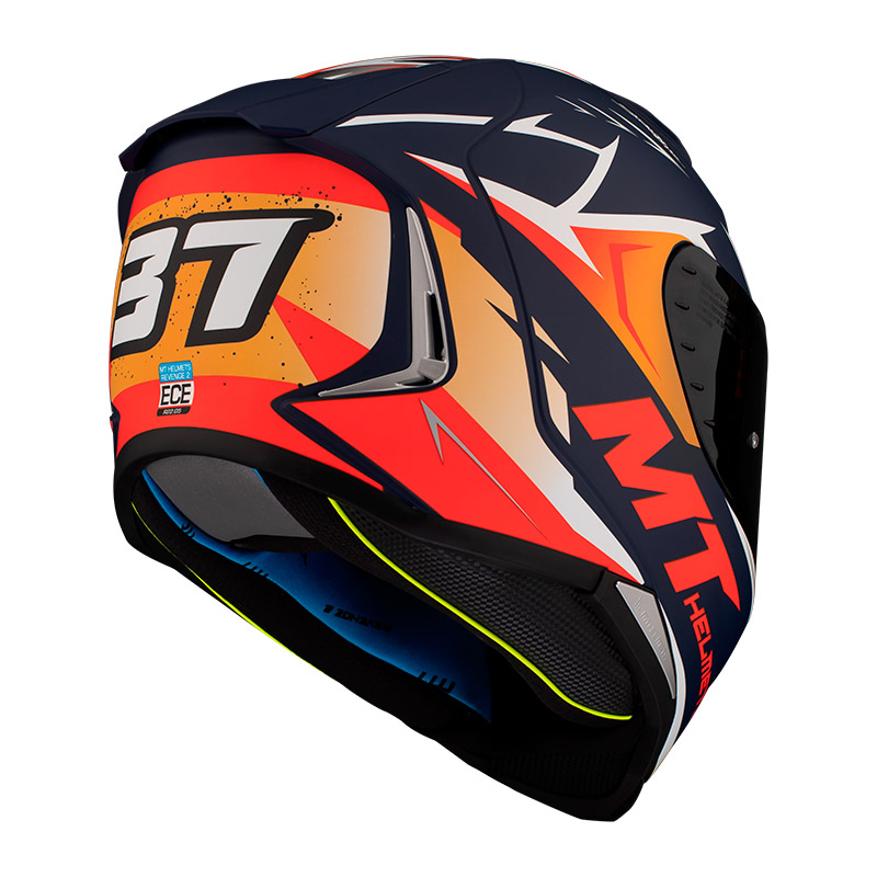 Материалите, използвани за интериора на шлемовете MT HELMETS, са изработени от огнеупорни влакна, за да се гарантира оптимална безопасност.