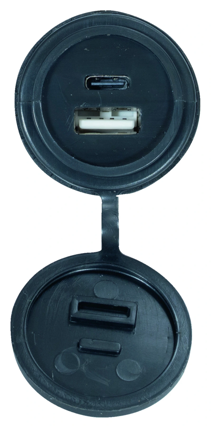 Двойният USB вграден контакт (2 x макс. 3,6 A) преобразува входното напрежение от 12 / 24 V в USB стандарт 5 V. Специалитет е оборудването с USB-A и USB-C букса за доставка на съвременни мобилни телефони.